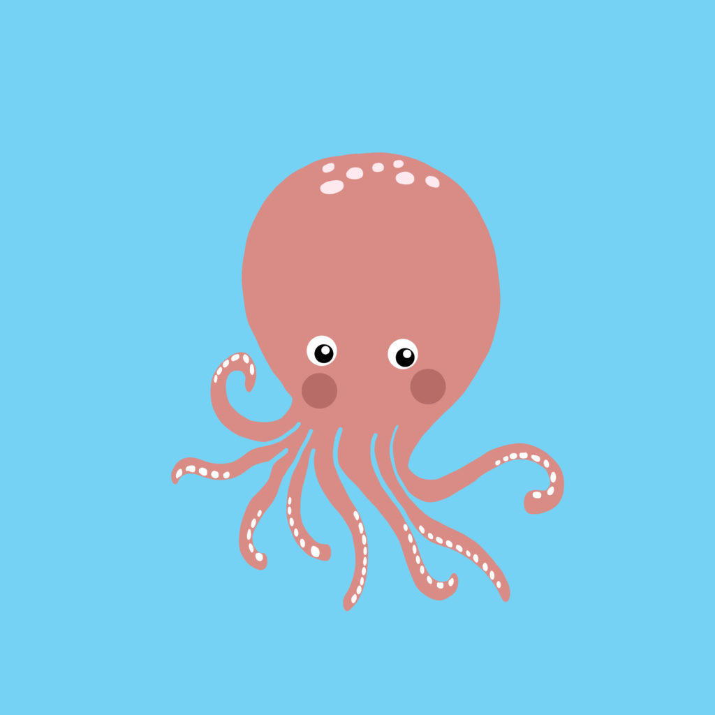EN: A cute little pink baby squid drifting and swimming through the blue ocean.